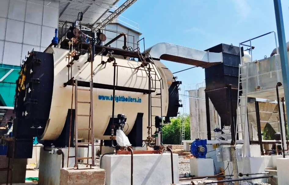 Construction : Shell and tube type. Fully wet back, three pass agro waste fired boiler.