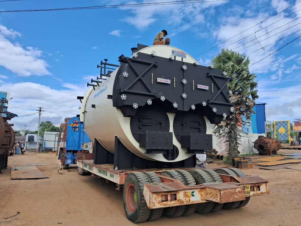 Construction : Shell and tube type. Fully wet back, three pass agrowaste fired boiler.